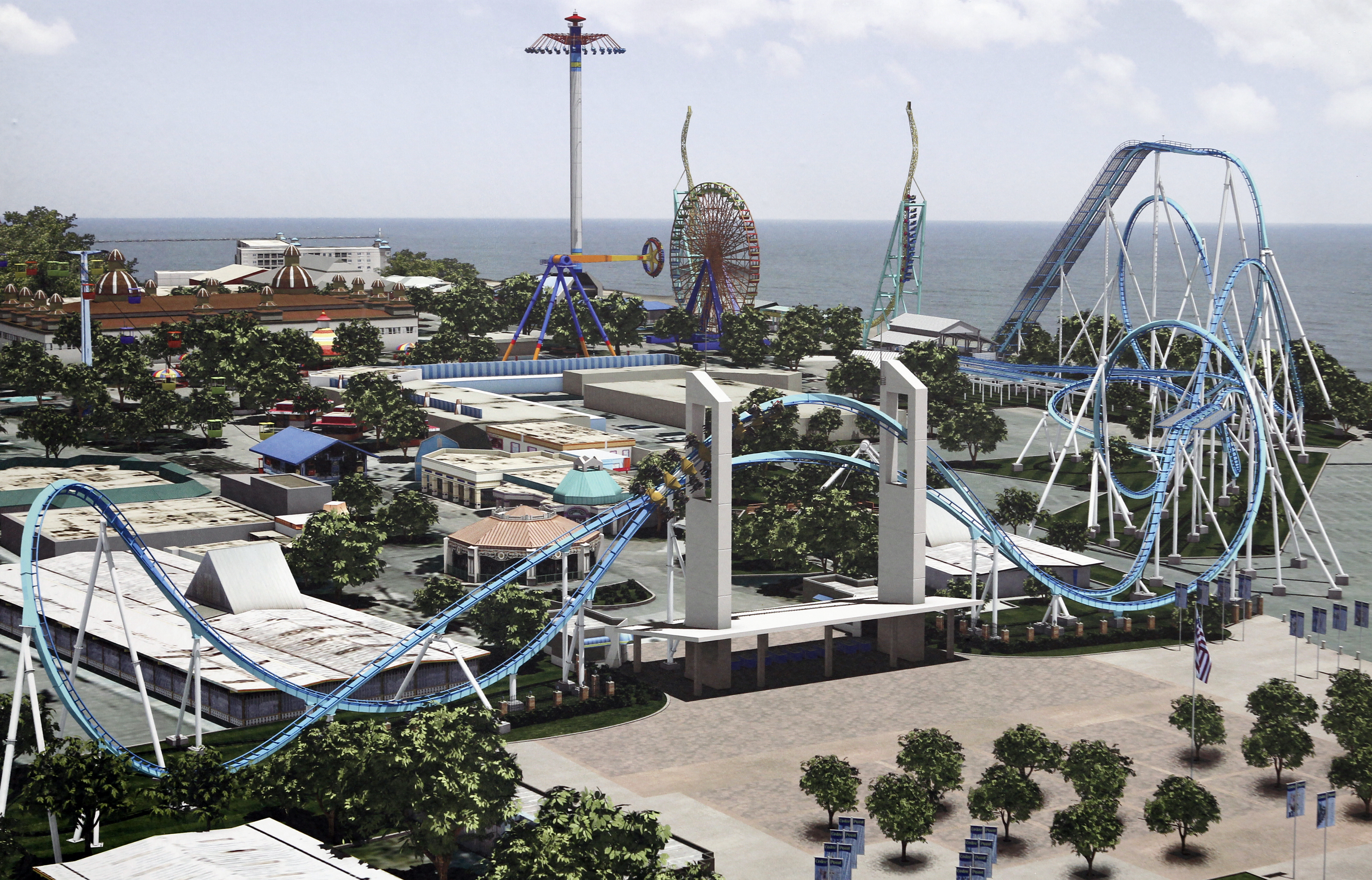 Cedar point is an amusement park located in sandusky, ohio, along lake erie.